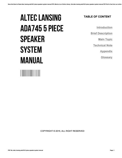 In order to read or download Altec Lansing Ada745 Speaker Manual ebook, you need to create a FREE account.