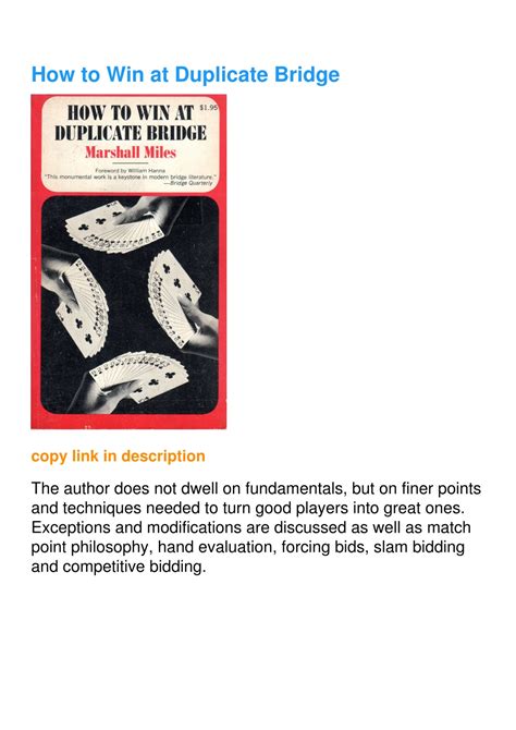 File Name: How To Win At Duplicate Bridge.pdf Size: 7916 KB Type: PDF, ePub, eBook |